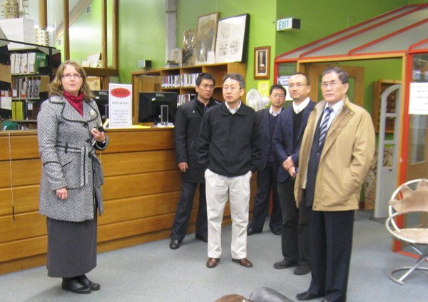 Claire Speedy女士(左一)、谷凯博士(左三)陪同丘进一行参观奥克兰大学建筑与设计学院