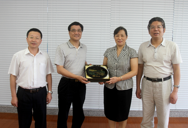 辽宁大学副校长陆杰荣(左二)和调研组座谈