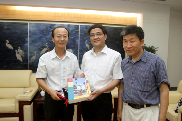 光磊教授(左)向张禹东副校长赠送圣地亚哥大学的教学计划
