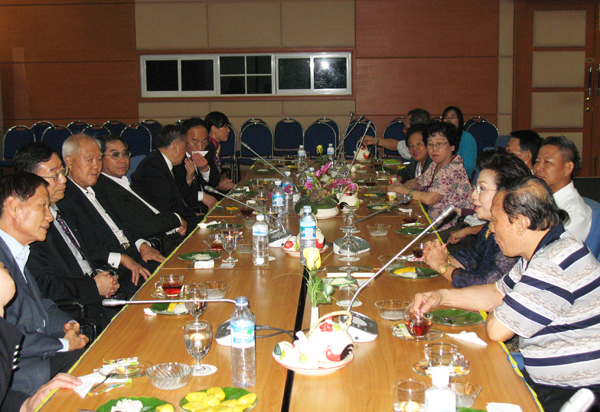 泰国泰中文化经济协会是本次考察团的主要接待机构之一。协会会长、泰国前副总理披尼先生,副会长威七上将于11日晚专门设宴款待华侨大学考察团。曾在华侨大学接受汉语培训的十余名泰国军官和政府官员也应邀参加宴会。据悉,已经结业的6期培训班的学员目前已经成立了泰国军官和政府官员华侨大学校友联谊会。宴会上,这些校友们频频向李冀闽书记和考察团成员敬酒致谢,对母校的一片真情溢于言表。