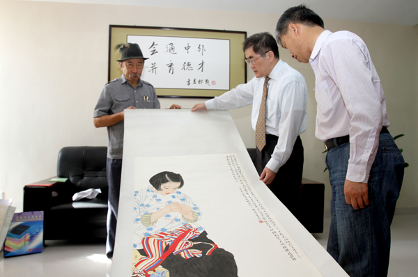继2008年捐赠珍贵仰韶文物后,麦继强教授此行又向四端文物馆捐赠了一幅名画家许言的工笔画以充实馆藏。