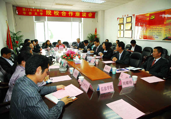 在签约仪式前,我校科研处、厦门工程技术研究院、研究生处、实验室与设备管理处,信息学院、材料学院、化工学院、机电学院、土木学院等相关单位负责人及专业教师参观了厦门市计量检定测试院的实验室,并与计量检测院技术负责人举行座谈,对进一步合作进行了切实有效的探讨交流。双方一致认为,将通过校院合作,实现强强联合,推动产学研结合,搭建校院双向开放、优势互补、资源共享的平台,致力于解决厦门市经济建设和社会发展中遇到的计量技术难题,提升计量技术支撑能力和服务经济发展的能力,实现教育领域和计量专业领域的互动双赢。