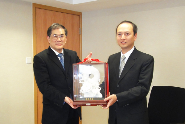 在澳门高教办,丘进校长一行受到高教办苏朝晖主任的欢迎。丘进校长介绍了华侨大学的办学历史和办学宗旨,表达了华大将不遗余力地为澳门培养优秀专业人才的愿望。苏朝晖主任请丘进校长转达对在华大就读的澳门学生的期望,希望他们在校学习期间勇于承担和组织学生社团活动,注重培养个人的领导素质,澳门高教办将在这方面给予大力的支持与协助。