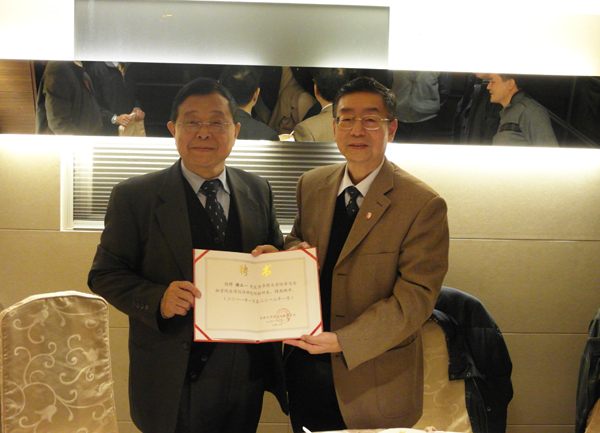 当日下午,李冀闽书记在台北会见了谢正一会长及我校部分在台博士研究生代表,并代表学校向谢正一教授颁授了华侨大学台湾经济研究所副所长聘书。李冀闽对谢正一的盛情接待表示感谢,并介绍了华侨大学的近况,同时就两岸高校的交流与合作的形势同谢正一深入交换了意见。他鼓励台湾教育同仁牢牢把握两岸关系和平发展的大好形势,借助华侨大学的文化特色和教育资源,推动台湾同胞终身学习、在闽台资企业管理层培训等具特色、多形式的双赢、多赢合作,为两岸经济发展提供更多个性化教育服务。