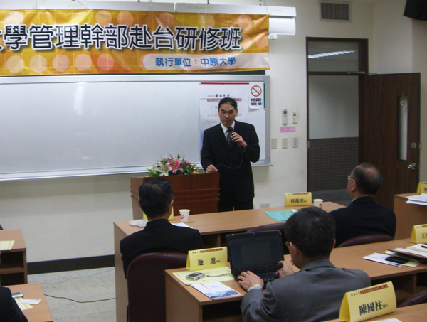 程万里校长代表中原大学对华侨大学管理干部第二期研修班学员表示热烈欢迎。他回顾了研修班的历史,称华侨大学派遣管理干部到中原大学、交通大学学习交流有十分重大的意义,是两岸大学交流合作的典范,也是两岸高等教育交流合作的创举;他希望全体学员刻苦学习,多提宝贵意见,多交流沟通,并预祝大家在台研修学习期间度过一段愉快的校园时光。