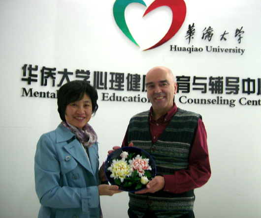 11 月 4 日至 8 日,比利时心理学家米杉( Michel Claeys )应邀访问我校,为校心理辅导中心老师做专题技术指导。访校期间,校党委副书记朱琦环会见了米杉先生,并向他赠送了校庆礼物,对其支持我校心理健康教育工作表示感谢。