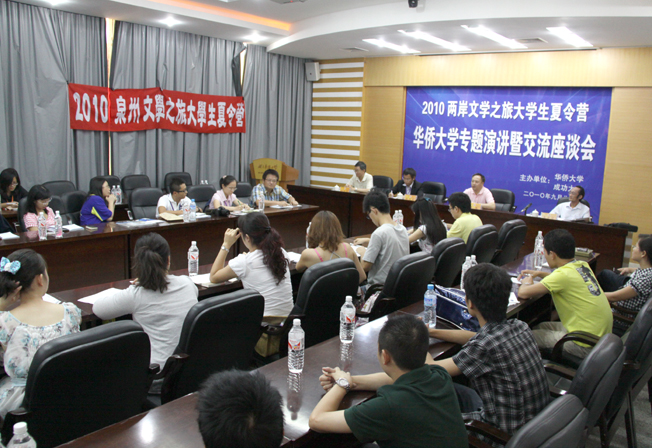 9 月 8 日上午,参加“ 2010 两岸文学之旅大学生夏令营”的40 名台湾学生及 6 名教师到华侨大学访问,与华侨大学文学院师生近距离交流。