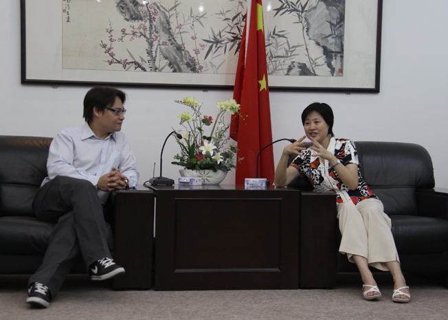 校办、外事处、校友与公共关系处等部门负责人会见时在座。