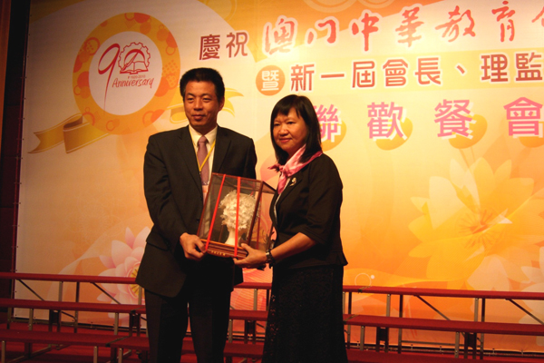 吴季怀副校长向澳门中华教育会赠送纪念品