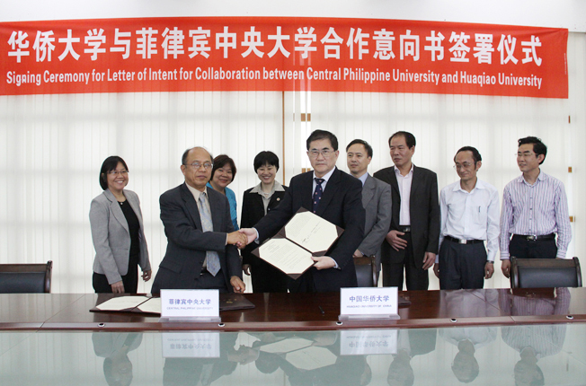 华侨大学与菲律宾中央大学今日上午签署合作意向书。华侨大学校长丘进、菲律宾中央大学校长罗伯勒斯分别代表双方在合作意向书上签字。这标志着华侨大学国际交流合作又迈出了可喜的一步。