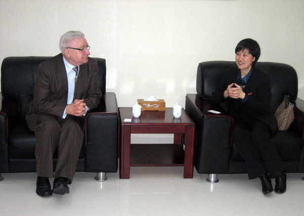 校党委副书记朱琦环在行政研发大楼 22 层接待室热情接待来宾,双方就学术交流、教师互访和学生交换等达成初步合作意向。校长助理曾路、外事处处长项士敏会谈时在座。