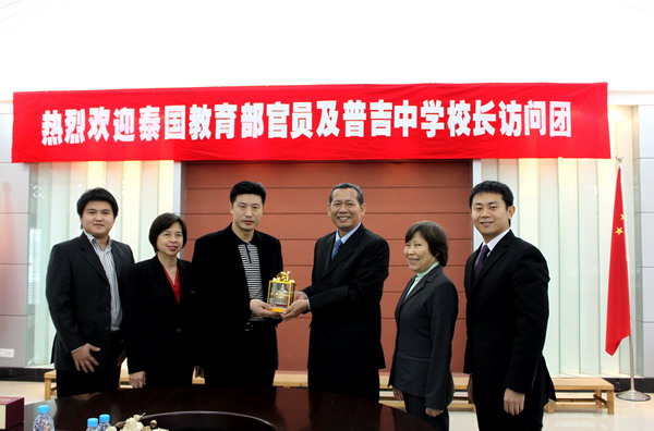 泰国教育部基础教育委员会官员 Uthaiwan Chalermchai 女士及普吉中学副校长 Pornsak Jindapol 一行 6 人昨日访问我校华文学院。华文学院党总支书记赵明光、副院长陈旋波在 1 号楼会议室会见了访问团一行,双方进一步交流和探讨了合作设立普吉中学孔子课堂的相关事宜,并签署合作备忘录,由此标志华文学院与泰国普吉中学孔子课堂合作项目正式启动。