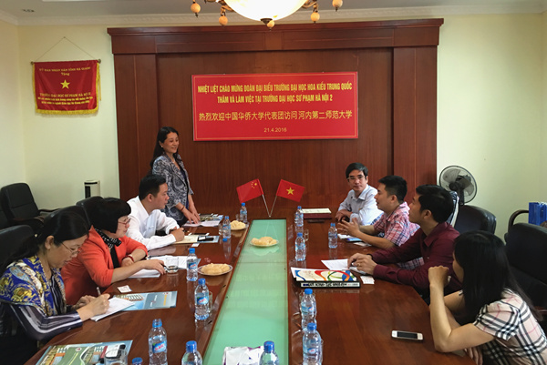 访问越南期间,代表团与河内第二师范大学副校长阮富通太等就落实两校合作协议,推进汉语言专业“1+3”项目合作,组织针对有意前来中国升学的越南高中毕业生的汉语学习班,协助越方开展中文师资培训等项目达成合作意向。与河内首都大学副校长杜洪强就落实两校合作协议中“3+2”专升本项目,开展旅游专业学习交流及交换实习生项目取得共识。