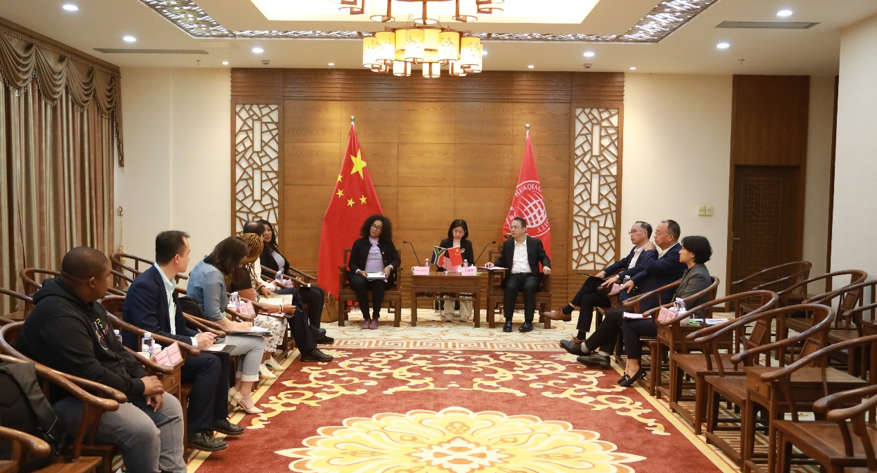 王建华向来访嘉宾简要介绍了华侨大学的办学历史、特色和优势,以及与非洲国家的合作情况,并表示学校愿进一步加强与南非及金砖国家的合作。
