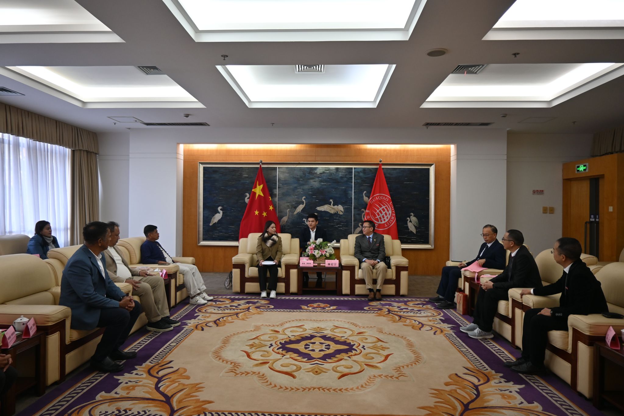 12月22日下午,泰国西南地区教育工作者访华团一行访校,副校长林宏宇代表学校会见泰国客人。我校国际中文教育办公室、普吉中学孔子课堂中泰方负责人参加会见。访华团由泰国普吉、攀牙、拉廊14区教育厅厅长彭替·努恭给(MRS. PORNTHIP NUGULKIT)带队,成员包括普吉中学、普吉女子中学、普吉皇太后中学、卡图中学、阿努松威拉女子中学等各校领导。