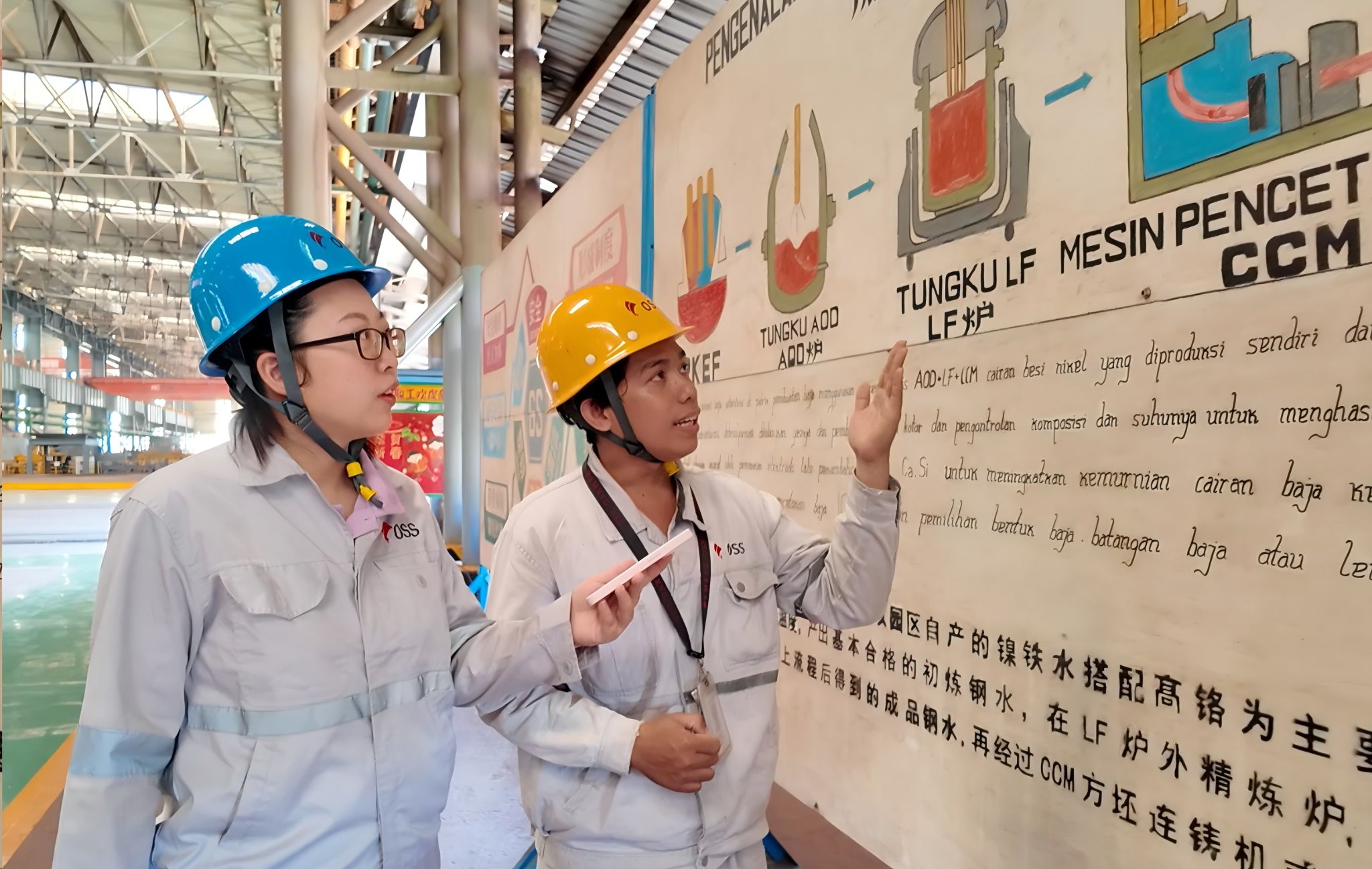 据了解,华侨大学该培训项目是通过派遣语言服务教师深入象屿集团OSS公司印尼当地厂区,为印尼学员分别讲授中文语法、中文二语教学法、中文教学设计等课程;组织印尼学员共同编撰《中-印尼语钢铁行业术语语言库》,共计5062条行业术语,打造企业内训教材。同时,语言服务教师还调研了全公司14个厂部共计238个岗位工作场景,编写了《不锈钢镍铁冶炼企业岗位中文实操》企业内训教材,实现语言教学与生产场景精准对接。