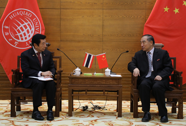 贾益民表示,“中泰一家亲”,尤其是随着“一带一路”建设的推进,两国间的往来将更加密切。当前,东盟各国越来越迫切地需要既懂中文又了解当地社会、掌握适应经济社会发展需要的专业技能的高级人才。长期以来,华侨大学为泰国社会培养了大批优秀人才,与泰国社会各界建立了广泛的联系。华侨大学愿意到清迈开展合作办学,为促进中泰的友好往来作出更大的贡献。