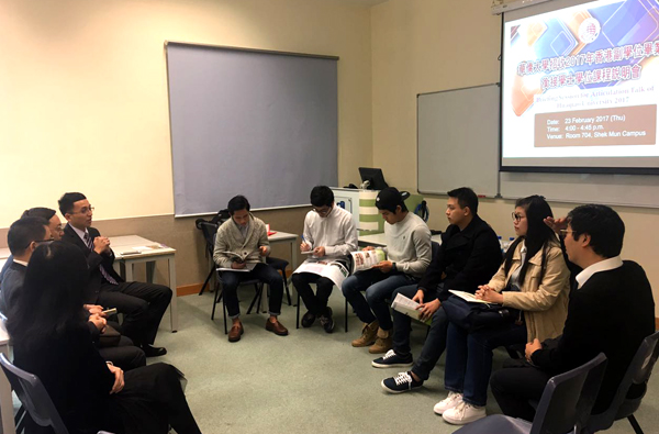 宣传小组分别前往香港岭南大学社区学院及持续进修学院、香港浸会大学国际学院及持续进修学院、香港职业训练局、香港城市大学专上学院等专上院校开展宣传,通过播放学校宣传片、PPT讲解办学情况与招生政策、小组讨论交流、现场答疑等方式,向与会师生详细介绍我校2017年面向香港副学位毕业生衔接本科课程的招生培养政策以及升学内地的优势。