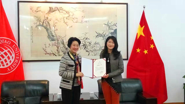 3月1日下午,“李喜发香港学生奖学金”颁奖仪式在我校陈守仁经济管理大楼12楼会议室举行。奖学金捐资人——工商管理学院2006级香港校友李嘉燕返校,为获奖香港学生颁授奖学金。校党委副书记朱琦环会见李嘉燕校友,并为其颁授捐赠证书。