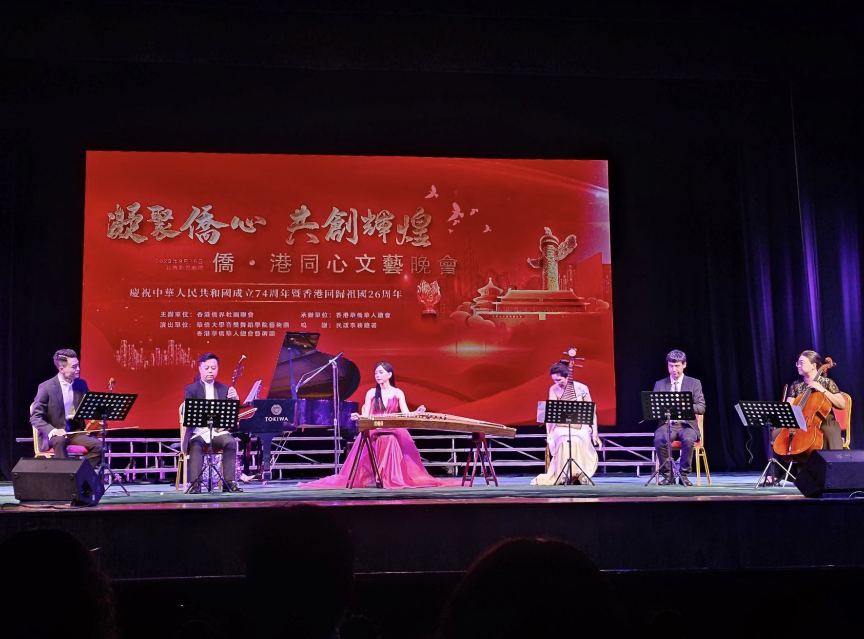 庆祝中华人民共和国成立74周年暨香港回归26周年“凝聚侨心 共创辉煌 侨‧港同心文艺晚会”,9月18日晚在香港新光戏院大剧院上演。晚会由香港侨界社团联会主办,香港华侨华人总会承办,华侨大学音乐舞蹈学院艺术团和香港华侨华人总会艺术团联合出演。