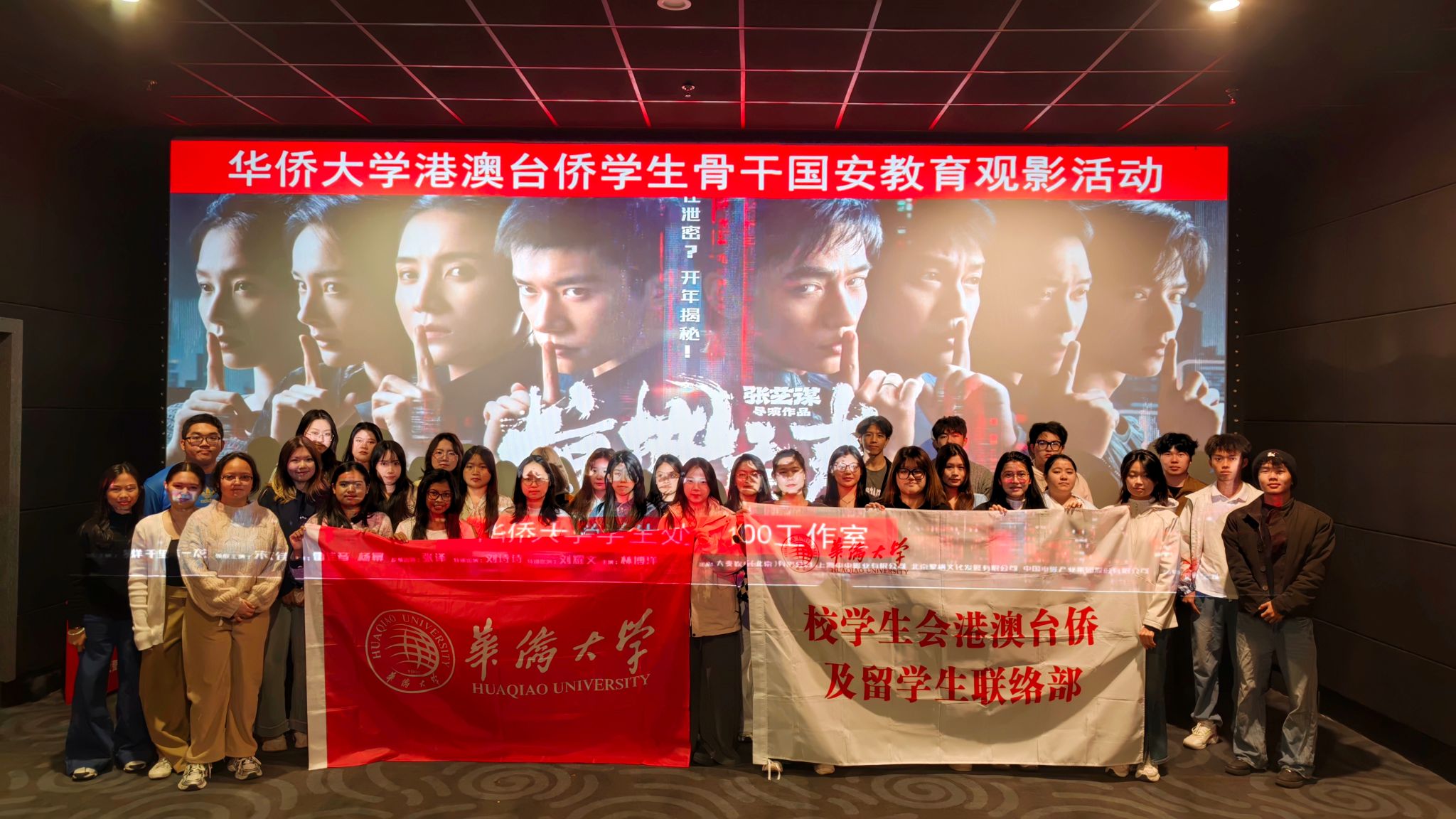 3月7日,华侨大学学生处组织100余名港澳台侨学生骨干及留学生代表,集中观看国家安全题材电影《惊蛰无声》,引导学生增强国家安全意识,树牢法治观念,共同维护国家安全与校园安全稳定。