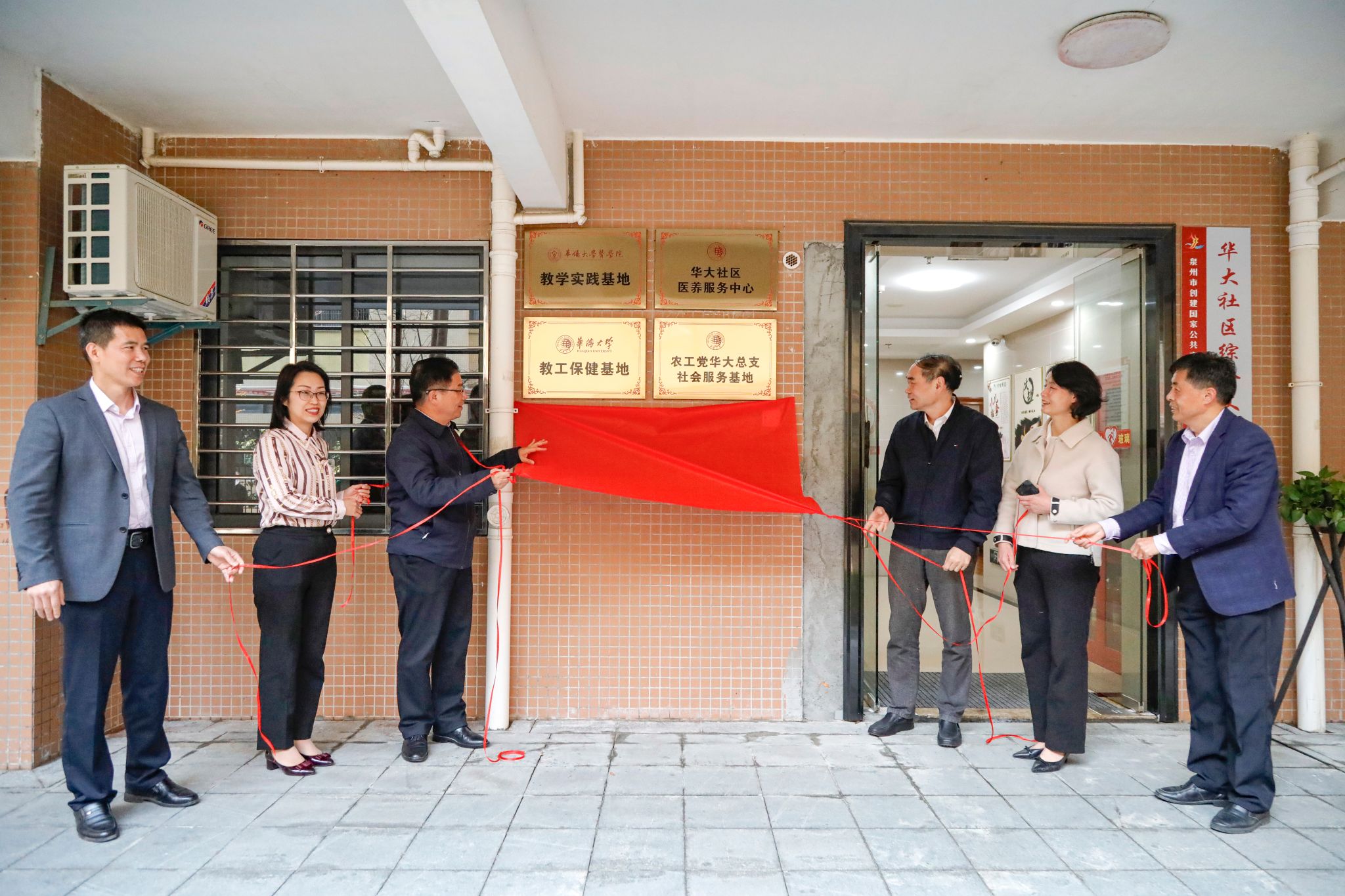 华侨大学医学院、华大社区、华侨大学教育工会、农工党华大总支部共建华大社区医养服务中心。签约、揭牌仪式3月9日下午在华城小区华大街道日间照料中心举行,副校长王秀勇出席活动。