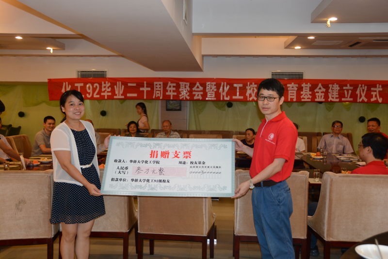 10月2日上午,化工92级校友毕业二十周年聚会暨化工校友教育基金建立仪式在泉州校区举行。此行,校友借二十周年返校之际,促成了化工校友教育基金的建立,并集资注入第一笔校友捐赠资金三万元人民币。