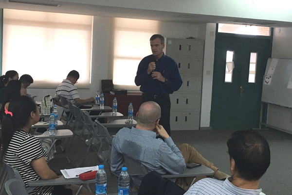 会见前,美国德保罗大学教授Patrick Murphy、Bruce Leech为我校创新创业学院教研室师生作《德保罗大学创业教育的国际合作、教学与研究》专题讲座。