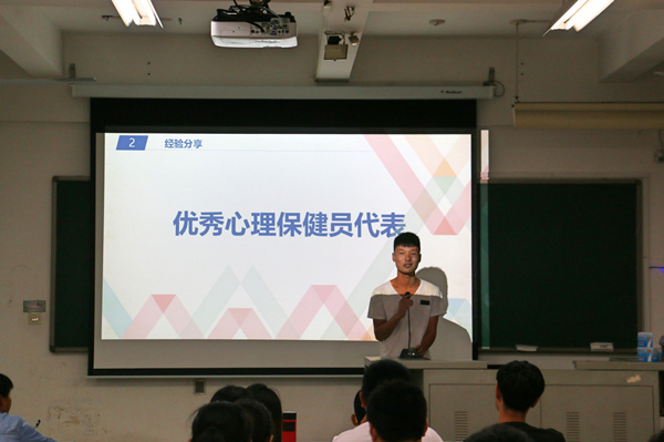 心理保健部负责人介绍了心理保健员的工作职责以及日常工作中需要注意的问题。随后优秀心理保健员代表上台分享了自己的经历经验以及对工作的理解,帮助各班级心理保健员更好更快的理解自己的职责以及进入工作状态。在提问交流环节,班级心理保健员提出了许多关于如何开展工作的疑问,以及工作定位、工作职责、工作技巧等问题,优秀心理保健员代表一一耐心解释和说明。现场气氛热烈。现场胡璐结合个人经历强调了做好心理工作的必要性,并对各班的心理保健员寄予了嘱咐和希望。