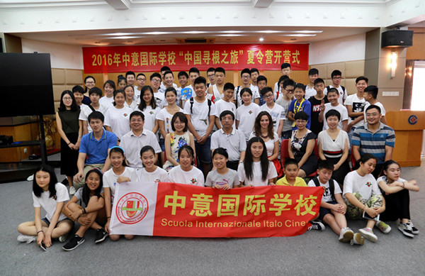 7月4日上午,中意国际学校“寻根之旅”夏令营开营式在华文学院学术报告厅举行。中意国际学校李祎老师、裴静怡老师,华文学院院长陈旋波、培训部主任李金钞,以及来自意大利的48位学员参加了开营仪式。开营仪式由李金钞主持。