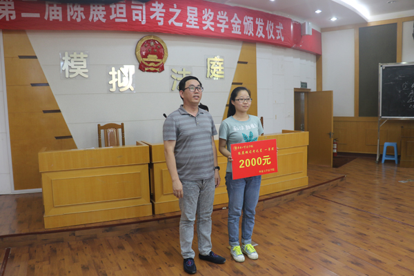 获奖代表王燕婷同学在发言中感谢陈展垣先生的资助,并介绍了自己的司考经验。