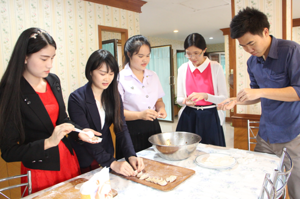 2月2日是中国传统的节日——小年夜。志愿者教师梁叶、莫贵莹为分校领导和老师们送上了诚挚的新春祝福。下午,色军分校活动现场张灯结彩,装饰着富含中国文化元素的红灯笼、中国结和对联,整个礼堂流光溢彩,充满了浓浓的中国年味。值此佳节,分校师生欢聚一堂,以“包饺子,吃汤圆”为晚会主题,共同庆祝中国的传统佳节——春节。