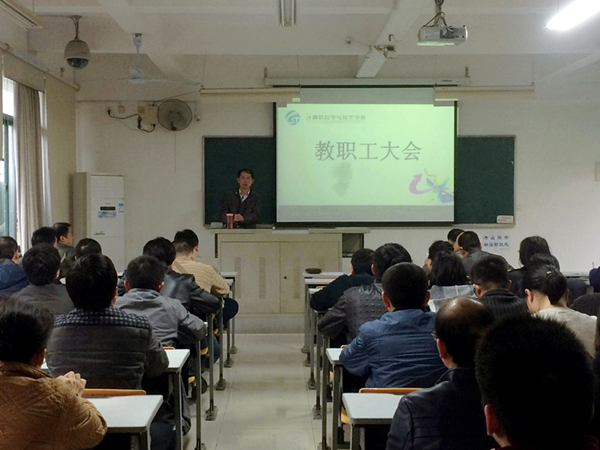 1月5日下午,计算机学院全体教职工大会在D1-401召开。院长陈维斌、党委书记陈卫峰等院领导及学院全体教职工出席大会,大会由陈卫峰主持。