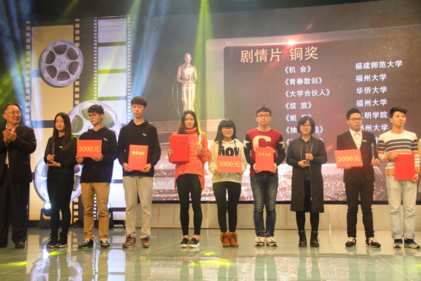 福建大学生创新创业微电影大赛12月10日在福州落下帷幕,作为我校第十二届就业创业文化节活动项目的微电影《大学合伙人》(作者:王璐珩、高骏鸿、吴靖宣、蔡艾纯、黄灿妹、林翠萍、刘轶超、张舒宁、赖起龙、张心怡,指导教师:郭艳梅、肖景川、黄志浩、朱志军)荣获剧情片铜奖。
