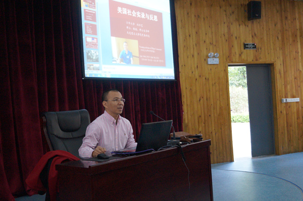 随后,“与信仰对话”活动第一期邀请了马克思主义学院党委书记、教授、博士生导师林怀艺教授做“美国社会实录与反思”专题报告。林怀艺结合自身在美国杜克大学访学经历,从美国自然社会和民众、美式教育、美国的医疗与养老、美国的种族歧视和枪支泛滥、美国的社会治理结构等八个方面分析美国社会实录,鼓舞在场所有党员、入党积极分子,坚定信仰,牢记使命,弘扬爱国精神,增强社会责任意识,从自身做起,共圆中国梦。