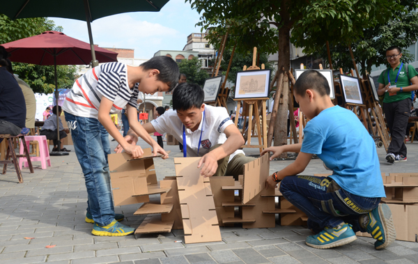 在作品展展区,创意椅子设计令人耳目一新,现场的居民、小朋友们兴致勃勃,流连忘返。这次实践在提升同学们的专业自信的同时亦为当地的居民带去了新奇、快乐,吸引更多的年轻人关注社区魅力建设、参与社区文化建设。