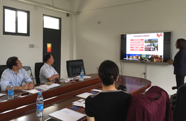 陈丽仪详细介绍了SEG集团的教学机构组成、办学特色、校园风光、学生生活以及细分的专业设置情况等,并对该院拟与中国院校合作的主要模式进行解释,表示SEG旗下大学(SHMS 瑞士酒店管理大学、César Ritz瑞士恺撒里兹酒店管理大学、HIM 瑞士蒙特勒酒店工商管理大学、IHTTI瑞士纳沙泰尔酒店管理大学、CAA瑞士库林那美食艺术管理大学)均愿意直接接收旅游学院推荐的旅游管理、酒店管理、会展管理的本科应届毕业生就读一年制/两年制的专业硕士。陈丽仪同时表示,欢迎旅游学院MTA硕士生及感兴趣的师生参加SEG集团提供的短期瑞士交流学习团。