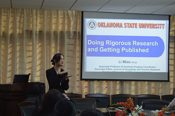 10月27日,美国俄克拉荷马州立大学酒店和餐饮管理学院副教授、OSU博士生硕士生项目主任、《Journal of Hospitality and Tourism Research》副主编苗莉博士做客工商管理学院学术讲座第三十一讲和旅游学院“旅游论道”。