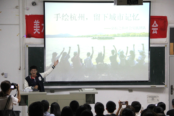 汇报会上,19支实践团队通过视频、PPT等方式分别从实践准备、过程经历、实践成果和个人体会等方面展示了暑期社会实践中的经历和收获。各团队汇报展示各具特色,分别介绍了土楼建筑文化、南京古都建筑美学、惠安女文化、安溪茶文化、德化陶瓷文化、闽南民间艺术的传承与保护等......“手绘杭州,留下城市记忆”实践团的严宇航,生动地讲述了实践过程中的感悟和收获。
