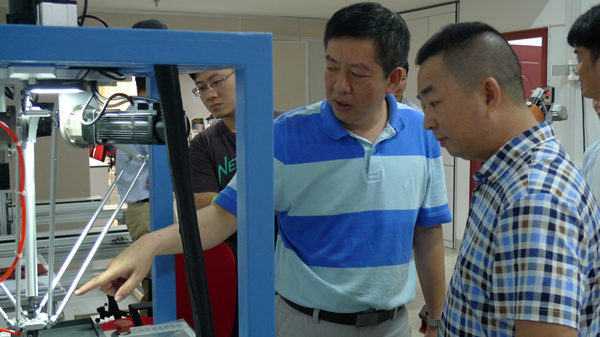 郑力新陪同客人参观了位于施良侨科技楼七楼的工学院科技创新中心,向客人展示了工学院在机器视觉,工业机器人,大数据云计算及信息安全等领域的科研设备及技术力量。唐坤军表示,希望借着特步成立独立的信息技术公司以及工学院在大数据和工业机器人等领域的研究基础,与工学院共同申报省级课题或进行深入技术合作,以校企合作的方式,寻求技术支持。郑力新表示,非常欢迎企业来工学院寻求合作,学院的科研条件以及科研体系正在逐步完善,一定有能力满足企业要求。此前,特步曾经与工学院就共同培养人才达成合作协议,具备进一步合作的基础。