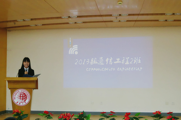 各个班级分别以ppt、prezi、视频等多种形式从学风建设、思想建设、班级建设、班级活动等方面展示各自班级。14级应物1班新闻联播式的汇报让人眼前一亮,14级电子1班汇报人的“爱要坦荡荡”活跃了现场的气氛,压轴的14级研究生班更是激起学生的阵阵掌声。经过大众评审票选,14电子信息工程2班、12通信工程2班、14通信工程1班、13通信工程1班、14应用物理班分获前五名。