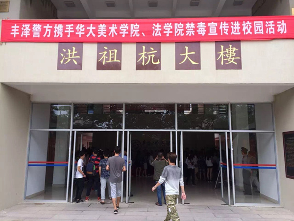 为进一步增强学生的禁毒意识和提高学生识毒、防毒、拒毒能力,有效扼制毒品对青年的危害。10月20日下午,由美术学院发起,丰泽禁毒办携手城东派出所和华大派出所、法学院共同举办了 “禁毒宣传进校园活动”。美术学院党委书记吕少蓬、2015级辅导范雪莹和2015级全体新生参与本次活动。