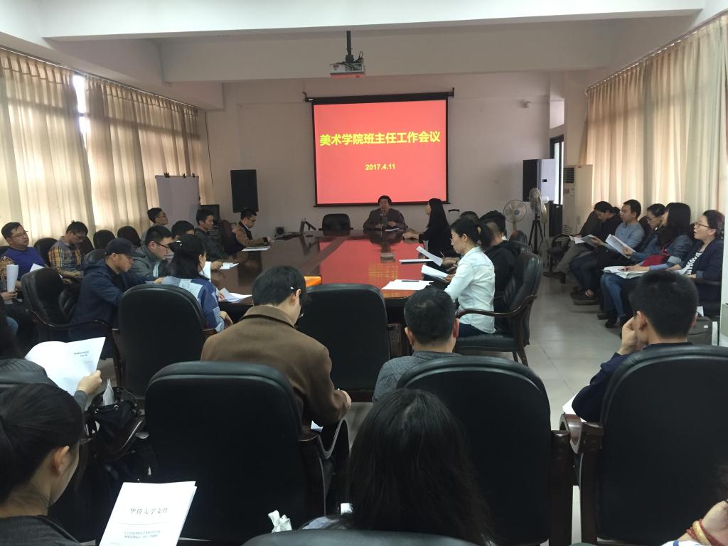 4月11日下午,美术学院在学院会议室召开班主任工作会议,学院院长宋武、学院党委书记吕少蓬、副院长王尔义及团委辅导员、全体班主任参加了会议。