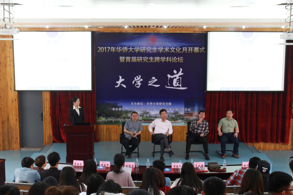 跨学科论坛是针对华侨大学研究生举办的高水平学术交流平台。论坛围绕时下热点问题,邀请各学科领域的专家学者就同一个话题进行交流、探讨,通过这种方式进行多学科的思想碰撞,激发新的创新思维,是对问题的整合性研究。据悉,此次跨学科论坛是2017年研究生学术文化月系列活动之一,由研究生院主办,华侨大学研究生会和青年理论研究会承办。