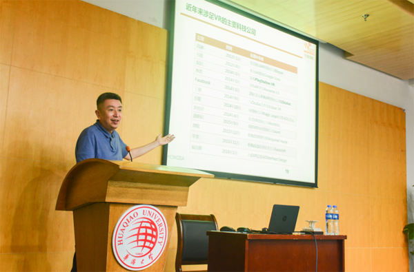 姜文军以“虚拟现实的前世今生”作为讲座主题,结合自己在可穿戴技术领域方面的工作经历和研究方向,从“What is VR?”、虚拟现实行业发展现状、虚拟现实行业的发展趋势,虚拟现实市场规模预测与展望及国内外头戴式设备代表企业等方面,详细介绍了VR、AR、MR等虚拟技术。姜文军通过播放系列有关虚拟技术在远程指导、维修、急救方面的应用视频,让在座的同学对虚拟技术有了更加清晰、具体的认识。
