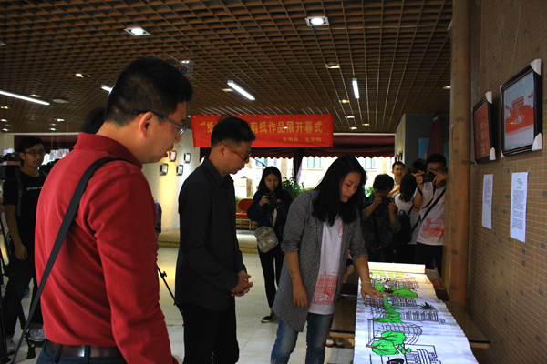 据了解,这是文学院2013级汉语言文学二班学生卢明第二次在学校举办个人作品展。本次展览以“纸间华园”为主题,除了刻工精致的长达五米的清明上河图,更有华大风景的剪纸长卷。该长卷以华侨大学泉厦校区的标志性建筑为主,以华园一草一木为辅。同期展出的还有京剧戏曲脸谱和剪纸周边伴手礼。