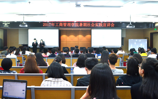 4月24日晚,工商管理学院暑期社会实践宣讲会在经管12楼召开。校团委秘书黄炳超,工商管理学院辅导员张钟元、王子蔚及往届暑期社会实践优秀团队代表参加本次宣讲会。
