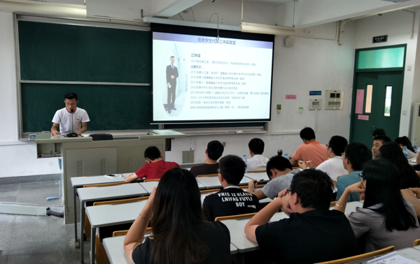 优秀学生代表江坤梁、叶飞与大家分享了参赛经验和感受,详细介绍了参赛过程中遇到的问题以及解决办法。期间,兼职辅导员潘荣杰介绍了各个赛事的赛程安排,鼓励大家积极参赛,努力将作品转化为专利论文等成果。