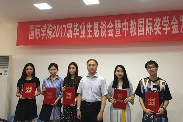 6月25日,国际学院在杨思椿科学馆四层会议室举办2017届毕业生恳谈会暨中教国际教学金发放仪式,副校长曾路,国际学院院长李勇泉、副院长陈慰星等师生出席。