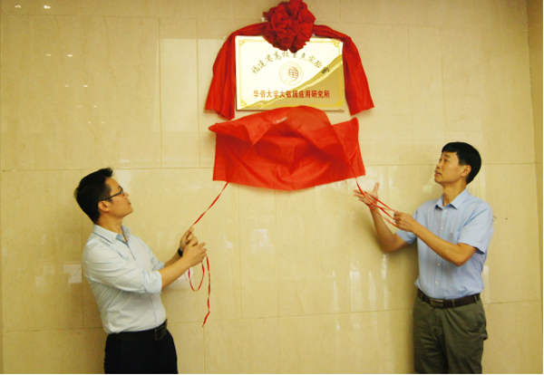 安溪县县委常委许锦青(右)、我校数学科学学院院长黄华林共同为研究所揭牌